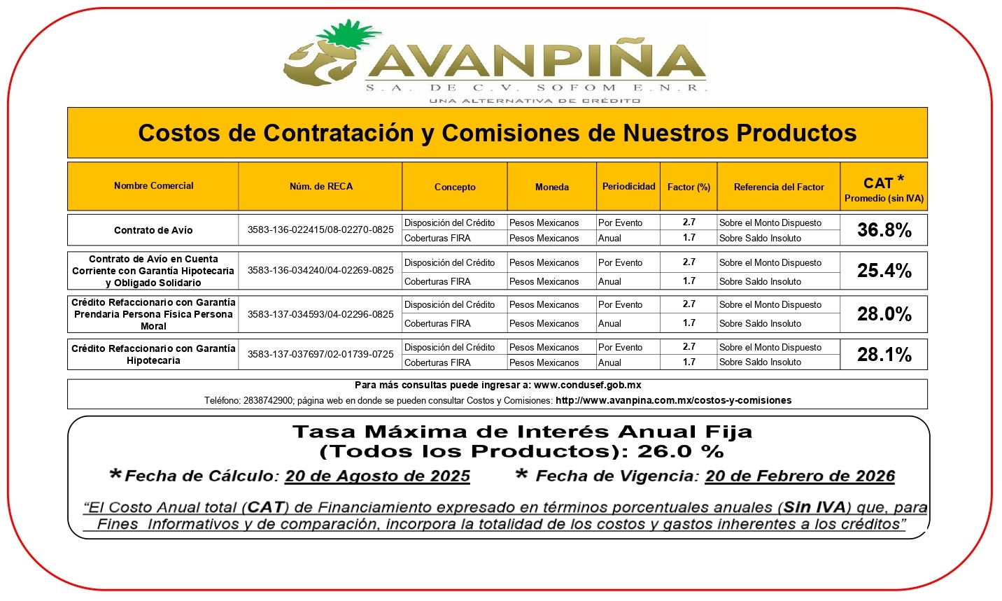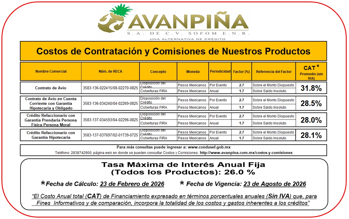 C O S T O S Y C O M I S I O N E S